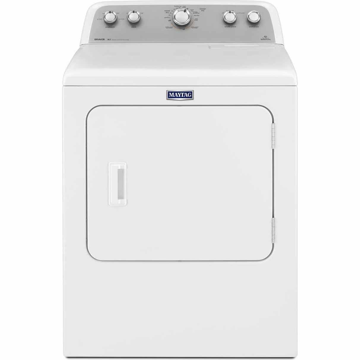 This 7.0 cu. ft. capacity Maytag electric dryer is all business when it comes to getting your largest. Get largest loads evenly dried by using this Maytag Bravos White Electric Dryer. Includes rear panel controls to provide convenient access for all cycle. ... Access Document